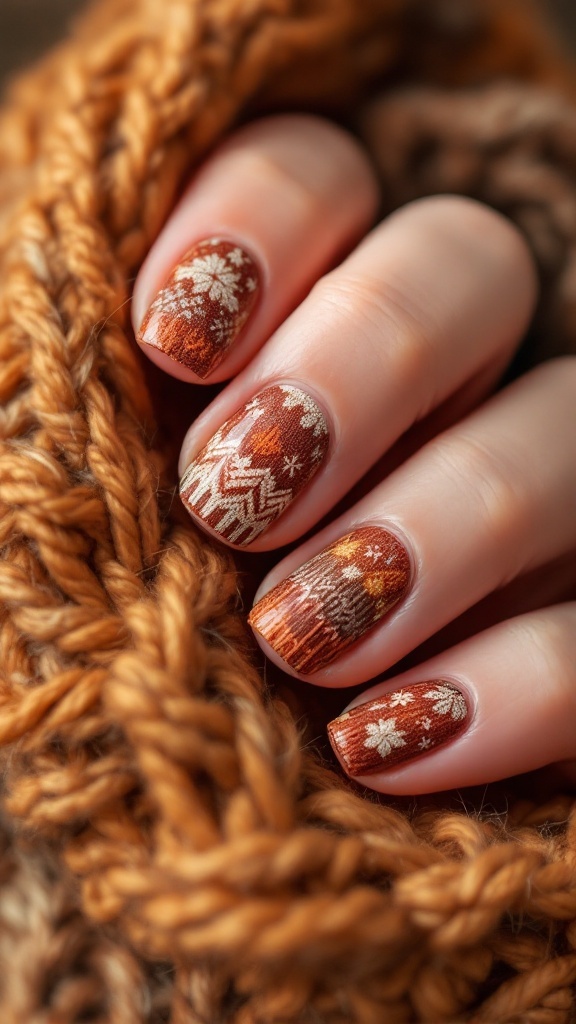 The intricate patterns, reminiscent of a favorite sweater, feature snowflakes and geometric shapes that pop against the vibrant background. These designs are not just pretty; they also capture the essence of sweater weather, making them ideal for this time of year.