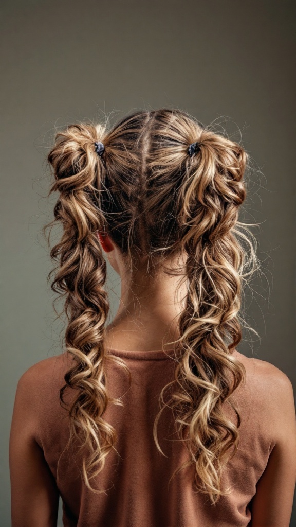 To achieve this hairstyle, simply divide your hair down the middle, tie each section up into a high ponytail, and then curl the ends for that bouncy finish. Add a bit of hairspray to hold the curls in place, and you're ready to rock!